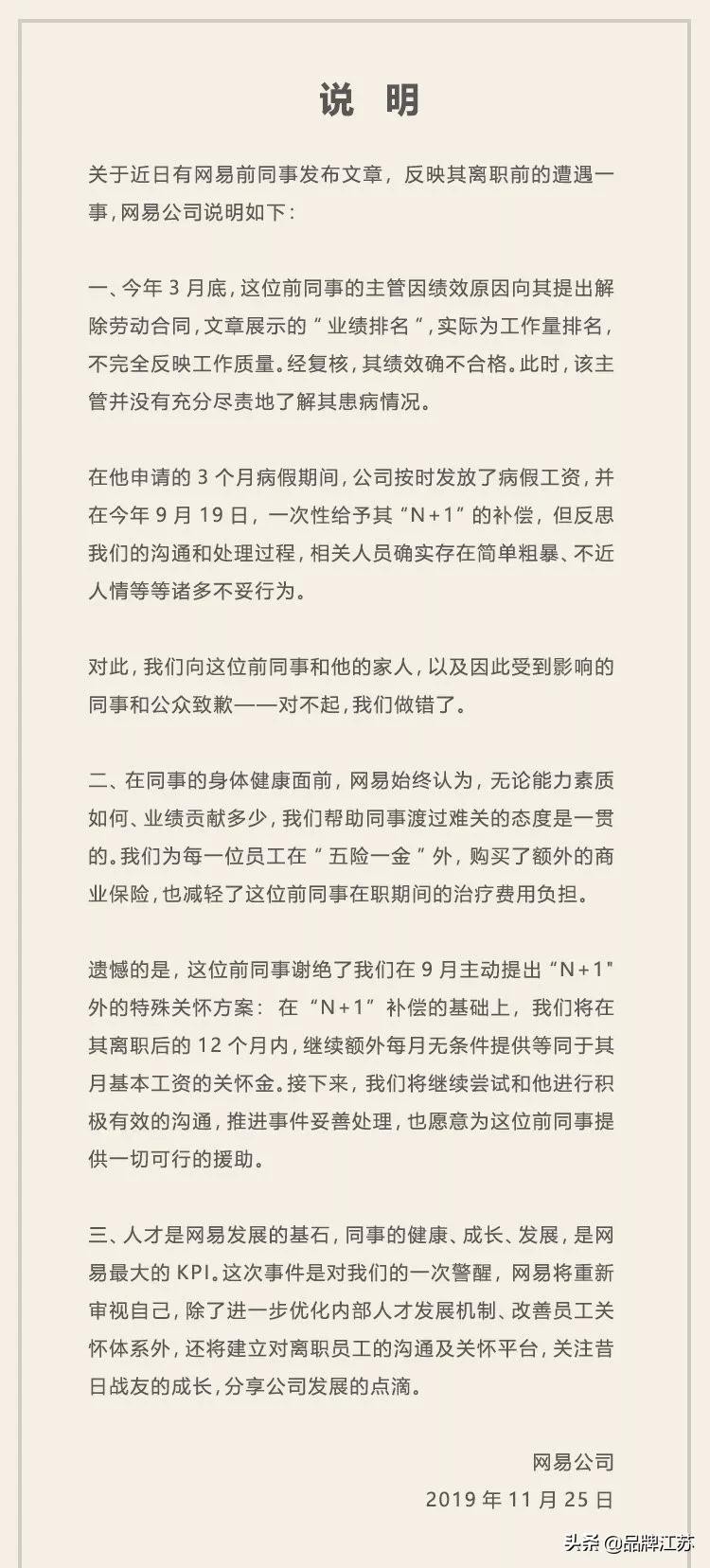 11月25日,网易两度发表声明承认自身错误,同时强调该员工绩效确实不合格。