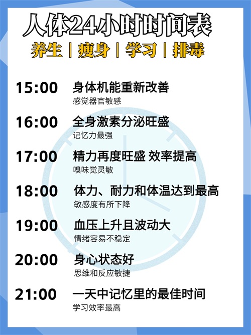 时间是我们的财富,而身体是我们革命的本钱。只有了解自己的身体,深入了解每个器官的运作规律,我们才能在正确的时间段做出正确的决策!
