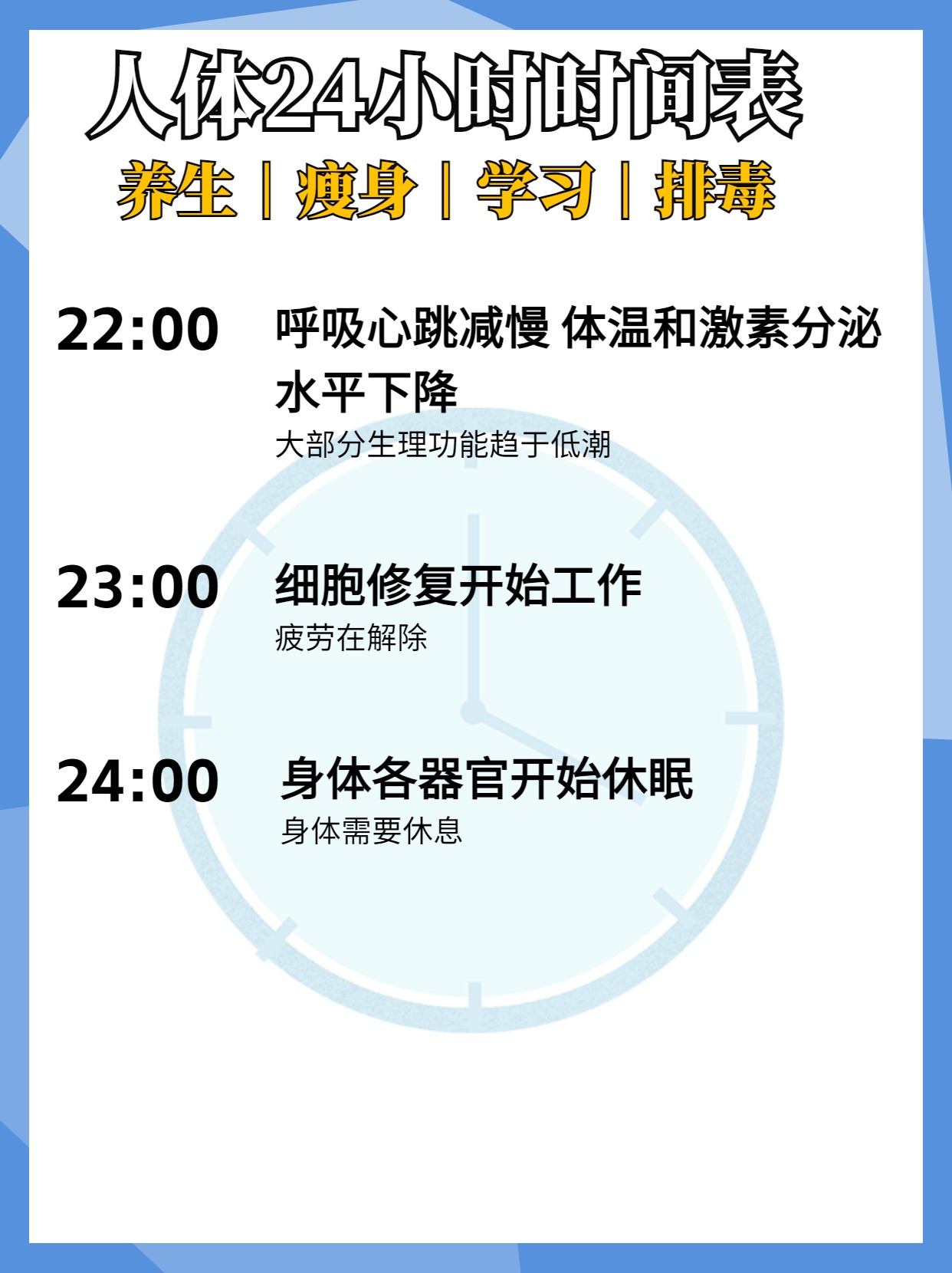 揭秘人体24小时时间表 养生瘦身学习排毒