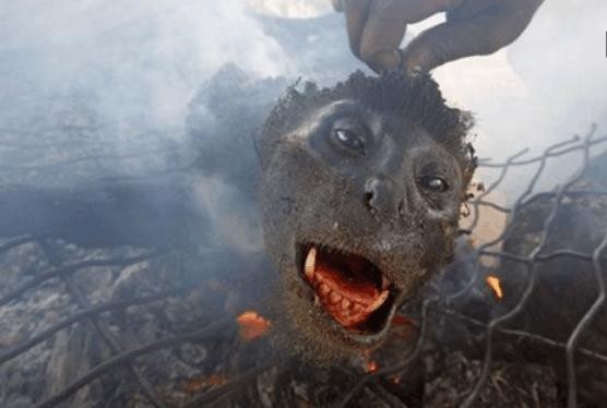 非洲烤狒狒。不是先杀后烤,而是直接烤。当地的人说狒狒被烤的表情让他们非常享受!