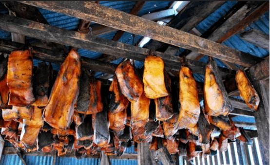 我们都知道入乡随俗这一说。在冰岛,这句话就意味着要咬一口臭鲨鱼,即鲨鱼的分解物。该鲨鱼被埋起来几个月,使其通过自身的体液进行发酵,然后切成一条一条的,挂起来风干。