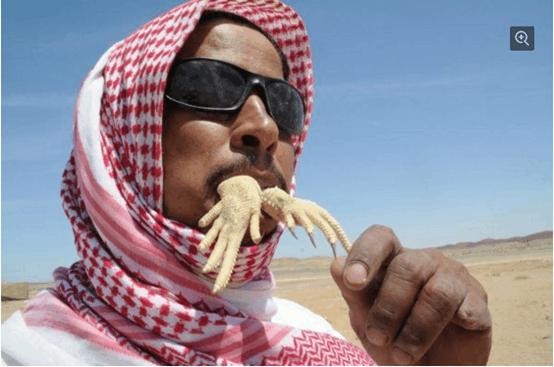 一位沙特男子正在吃一只“王者蜥(Uromastyx lizard)”,因为他们认为蜥蜴的血可以治疗疾病,强身健体,这道“菜”在中东的很多地方都是一种极品佳肴。