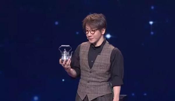 就在大家满心期待的时候刘谦给拿出了一个纸箱,打开后是一个银色的小水壶,体积不大,当然这就是他当晚的表演道具,随后他请了一位现场观众往水壶里注入了开水,而接下来就是见证奇迹的时刻了。