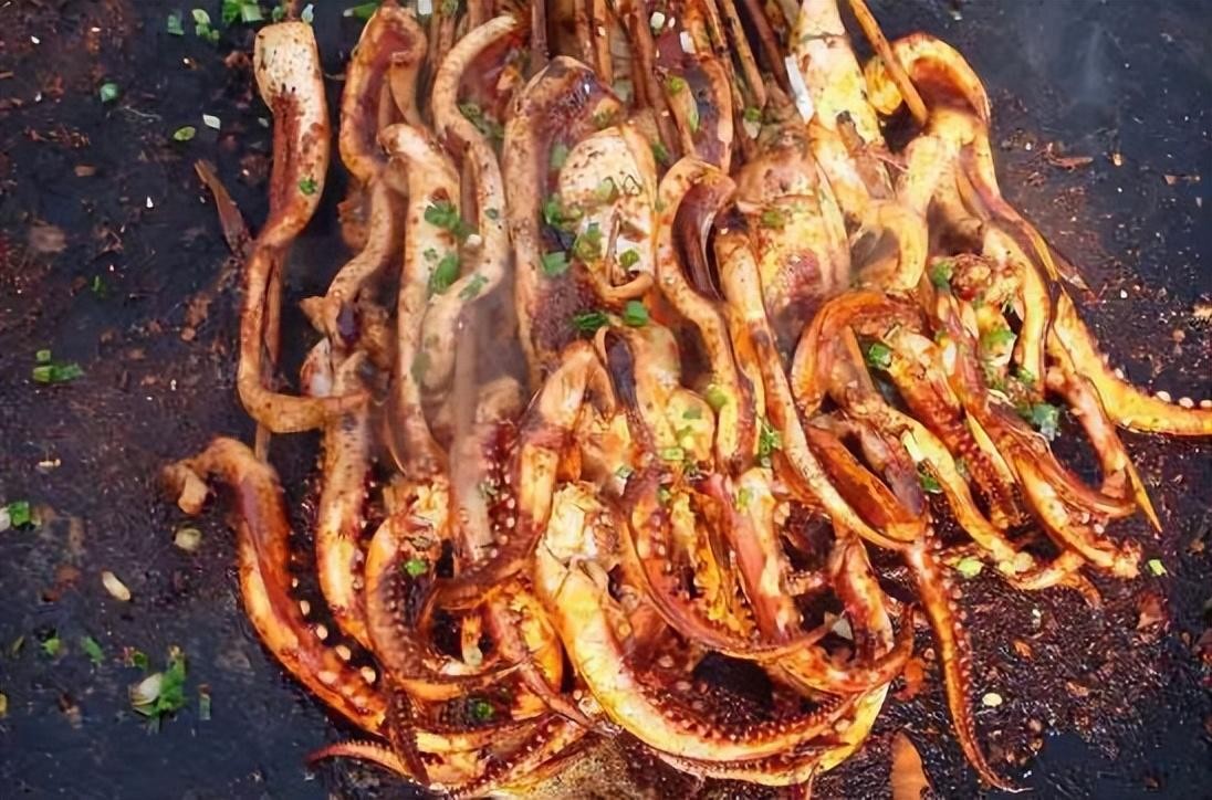 你知道吗,这铁板鱿鱼可是从日本传过来的。现在啊,无论你走到哪儿,步行街、美食街还是旅游景区,都能看到铁板鱿鱼的影子。那鱿鱼在铁板上煎得鲜嫩多汁,再刷上特制酱料,哎呦,吃一口就让人忘不了!你说,这能不火吗?