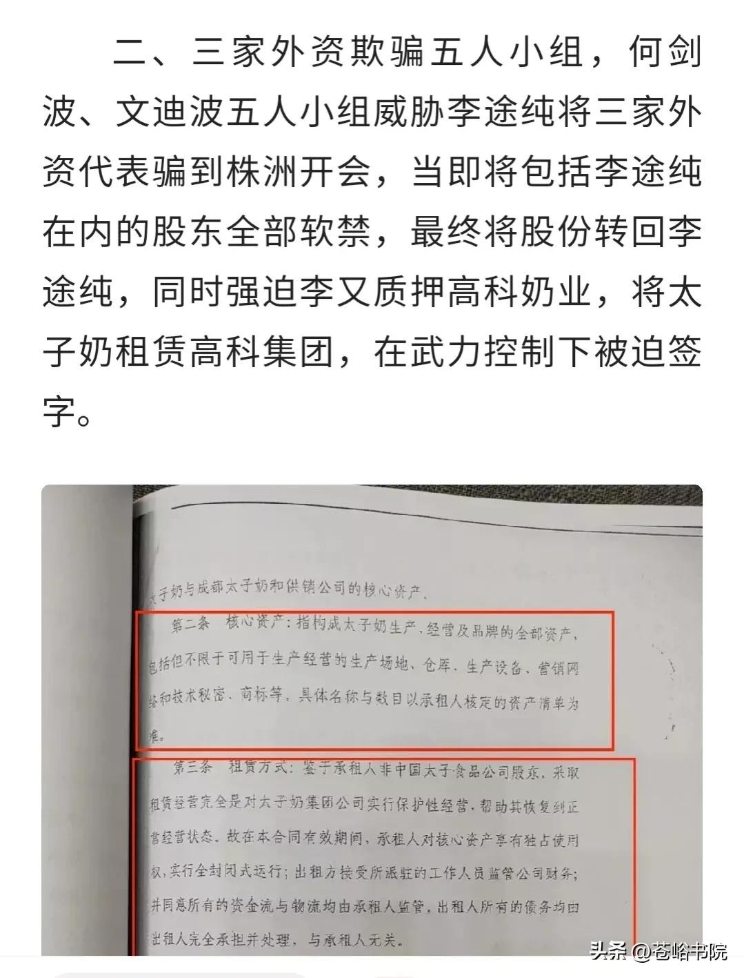 2、采取欺骗、武力控制等手段让李途纯将太子奶抵押给高科奶业,并租赁给高科集团。