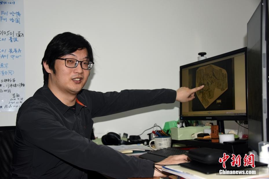 图为2月16日,论文第一作者兼共同通讯作者蒋顺兴在北京的办公室接受采访,介绍研究成果。 中新社记者 孙自法 摄