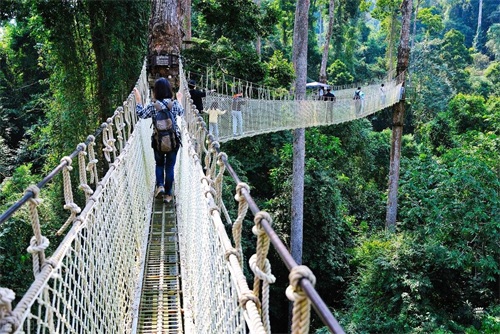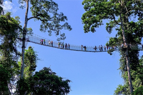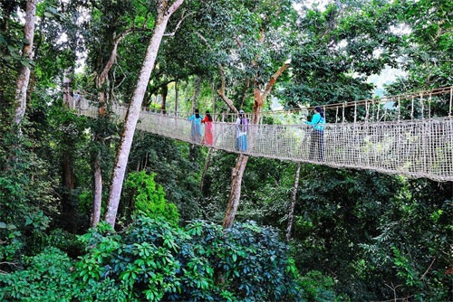 望天树,这棵古老的大树,高耸入云,是勐腊县的一大自然奇观。作为傣族人心中的神树,望天树不仅见证了傣族的历史与文化,更成为了游客们探索西双版纳风情的必到之处。而景区内的空中走廊,更是让人惊叹不已。借助数十棵望天树的树干,搭建出的悬空吊桥,让人能够从空中俯瞰整个热带雨林,感受大自然的壮丽与神秘。