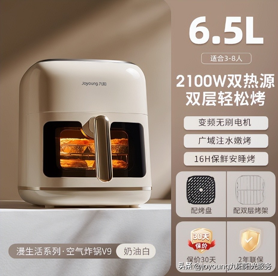 九阳空气炸锅 KL65-V9采用【上下焱烤,免翻面匀烤技术,美味无需守候】