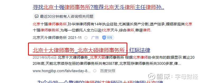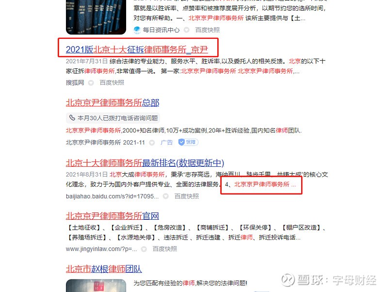1、2021年7月,京尹所开始出现在“北京十大律师事务所的排名”相关文章中。