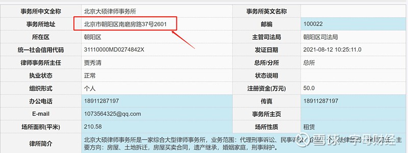 北京市司法局 2021年8月12日 批准设立大硕律师事务所。贾秀清,为该个人所主任,其原为北京恒略律师事务所的合伙人、律师。