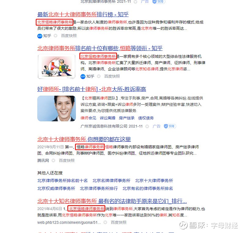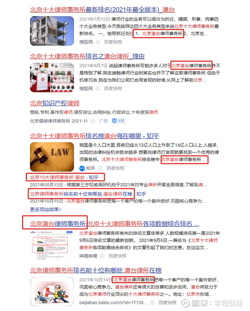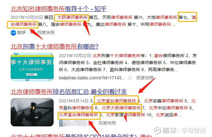 1、2021年7月开始,大硕所已出现在“北京十大律师事务所排名”文章中。