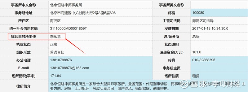 4、2021年1月15日,恒略所负责人由李武义变更为李永慧。