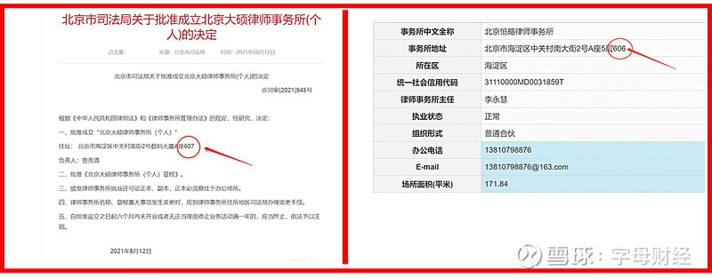 3、大硕律所成立时地址与北京恒略律师事务所地址,一个是 606,一个是 607,为邻居关系。