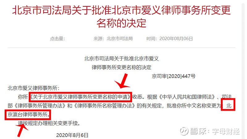 2、2020年10月,北京爱义律师事务所改名为北京瀛台律师事务所。