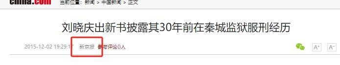 信息来源:新京报-2015-12-02-刘晓庆出新书披露其30年前在秦城监狱服刑经历