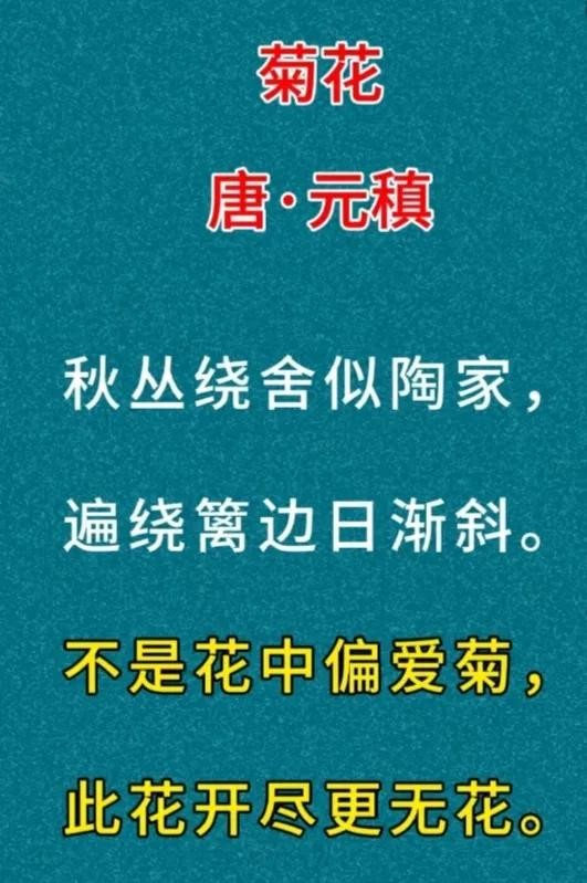 这首诗以菊花为题,表达了诗人对菊花的独特喜爱之情。诗中没有直接描写菊花的形态和色彩,而是通过比喻和反问,突出了菊花的高洁、坚强和孤傲的品格。诗人把自己的居所比作陶渊明的家,暗示了自己的隐逸之志和清高之气。同时,诗人也表现了自己专注地赏菊的情景,不知不觉中日已西斜,说明了自己对菊花的钟爱之深。这首诗构思新颖自然,笔法巧妙,语言淡雅朴素,饶有韵味。