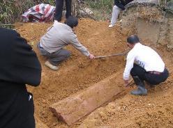 但是迁坟需要在半夜迁移,并且要在天亮之前必须下葬,否则陈年骨灰见到太阳不好,就是老话所说的魂飞魄散。我姨夫挑了一个好日子,那天的凌晨3点到5点之间挪坟是最好的。于是就找了一个专门干挖坟的人和一个专业干丧葬的人和姨夫的弟弟就去了 。