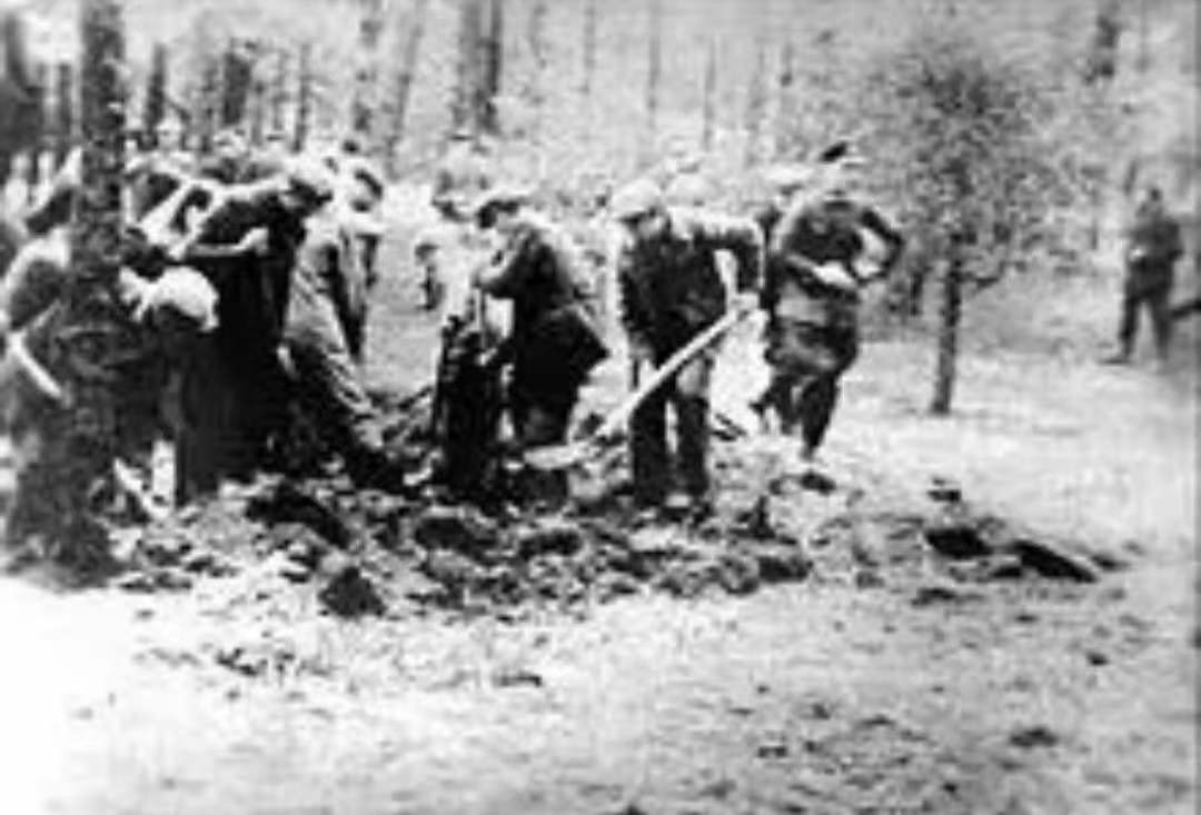 1942 年,一群铁路工人在斯摩棱斯克州以西的卡廷森林作业时,发现了大量的人的遗骸,他们将此事上报了。然而在到处都有死人的战时,这个消息并未引起重视。