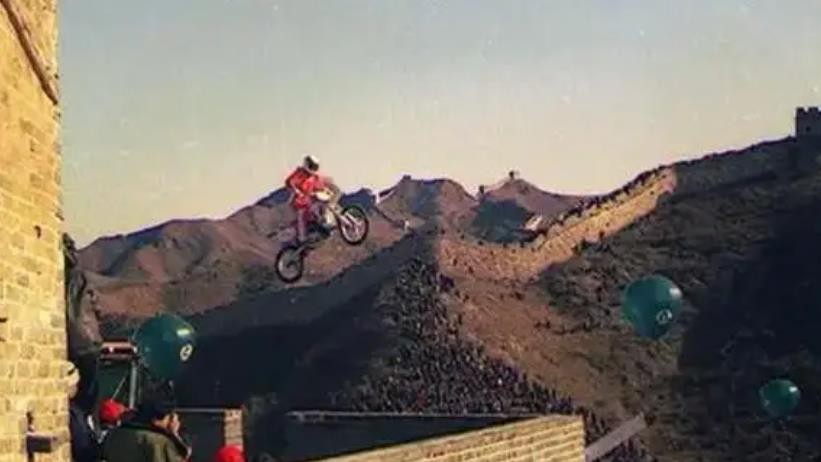 但好在柯受良完美地完成了这次飞跃,他驾驶着雅马哈250CC型摩托,在引擎的轰鸣声中飞跃烽火台,平稳地落在了仅四米宽的接应台上。