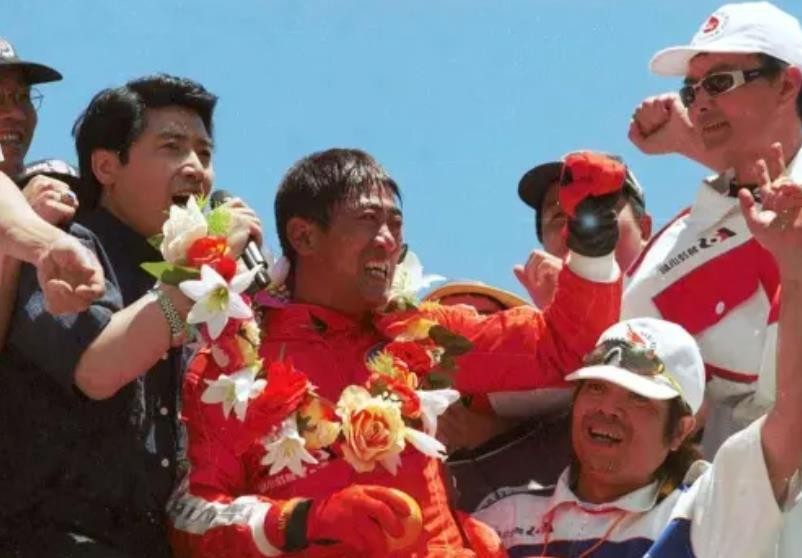 很快柯受良便被工作人员救出,被簇拥着带上花环,接受着属于他的荣誉和掌声。