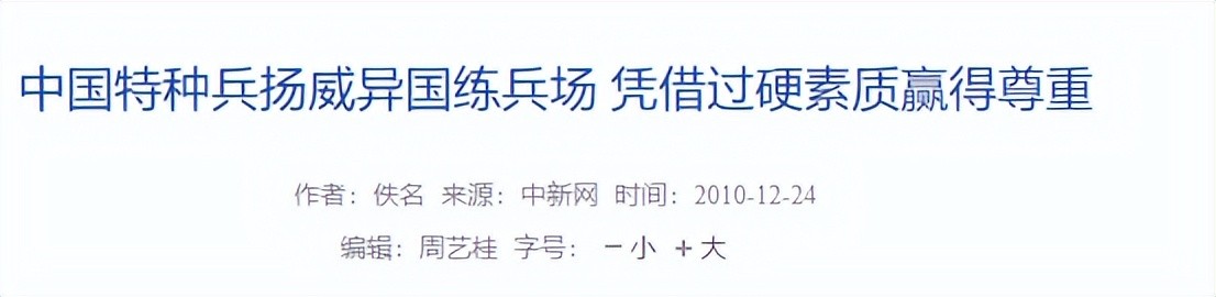 1.中新网:《中国特种兵扬威异国练兵场 凭借过硬素质赢得尊重》2010-12-24