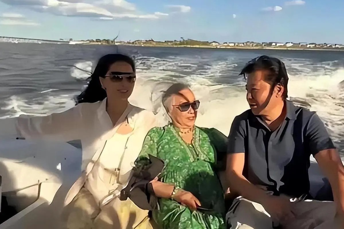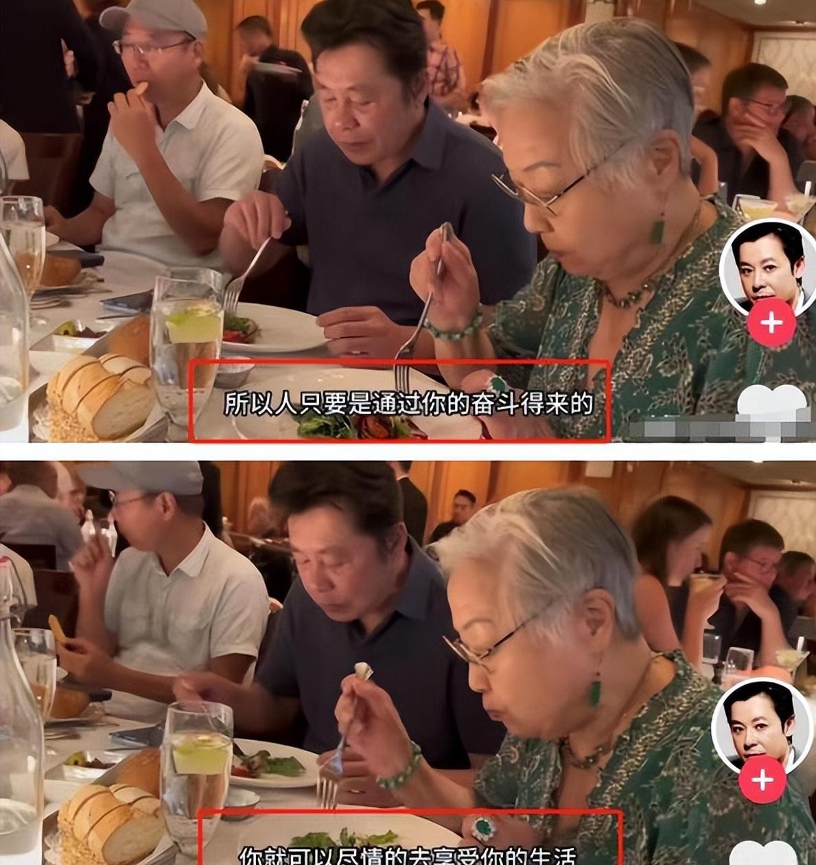 他的母亲如今状态看着也很硬朗,气色红润、头发微卷,一身名牌。