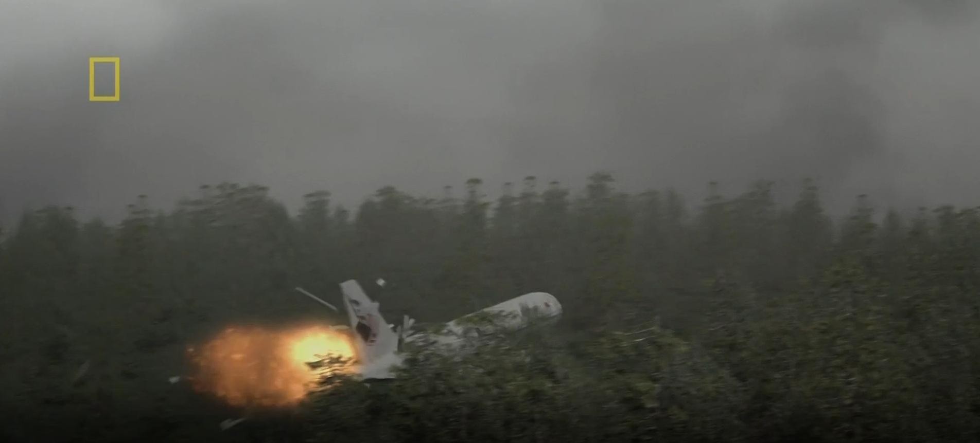 《空中浩劫》第17季第3集中的CA129航班坠机瞬间画面
