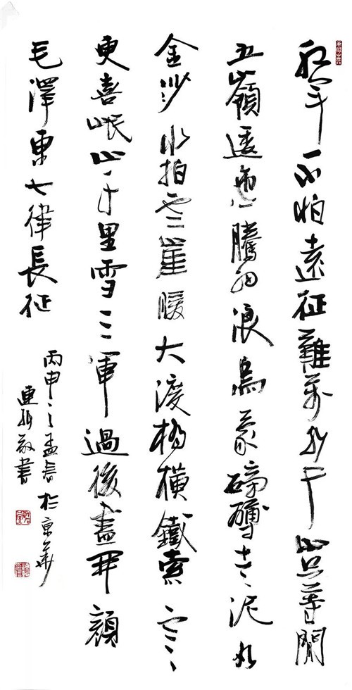 雷正民:观赏书家连辑临场挥毫,堪称快事。握管在手,挥洒自如,纵横不群,气概非凡,随机应变,出人意料。每创新异,颇具神采,笔力,气格,情趣无穷,耐人寻味。