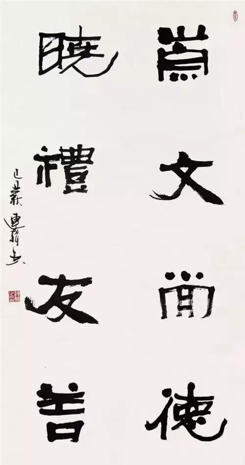 张海:连辑先生擅长诸体,尤长于隶,其隶取法,高古雄浑朴厚而又雅拙,灵动自然率意,具有鲜明的时代精神,展现了作者良好的审美素养。