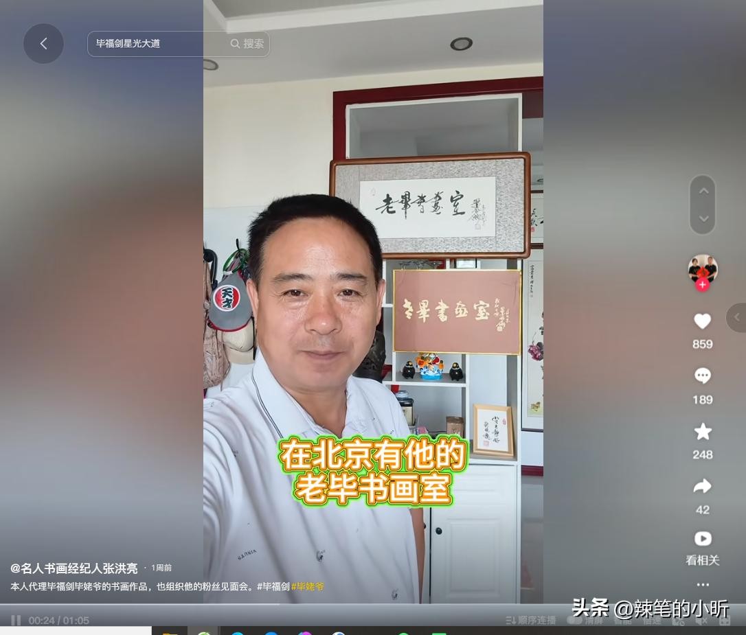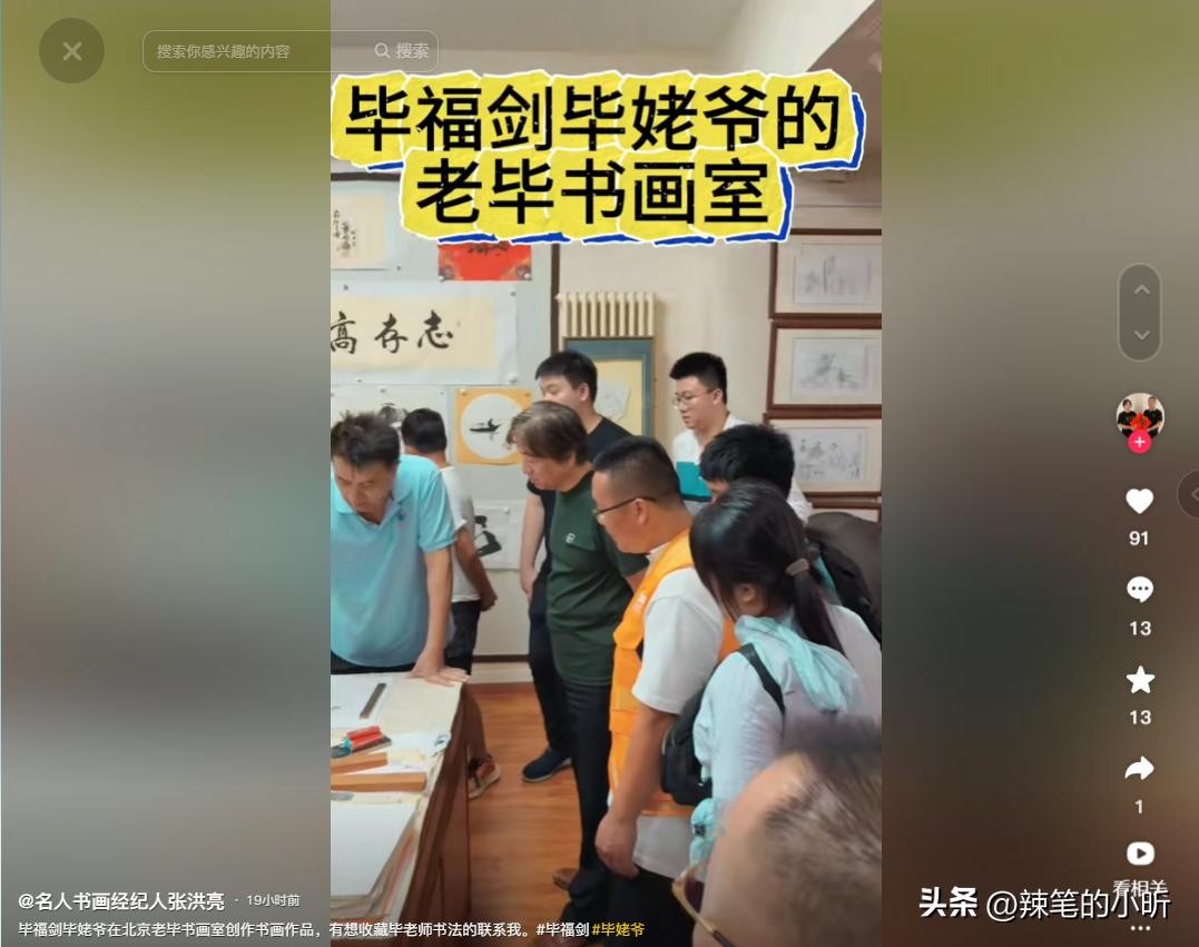 紧接着又有网友发现,在2023年的4月,毕姥爷书画室的工作人员曾发布过一则他的创作视频,下面带上了地址,是北京市海淀区四季青桥附近的小区。