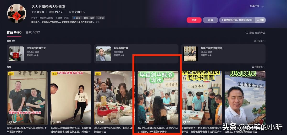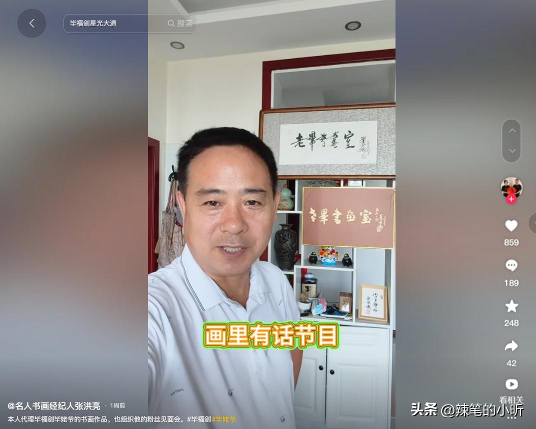 据悉这位知情人是毕福剑以及刘晓庆的书画经纪人张洪亮,不仅帮他们代理出售书画作品,还负责定期组织他们与书法收藏粉丝的见面会。