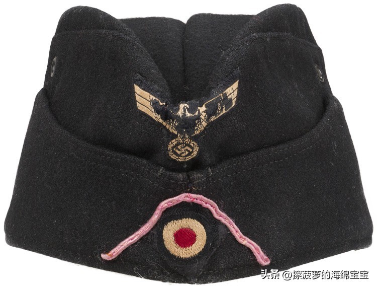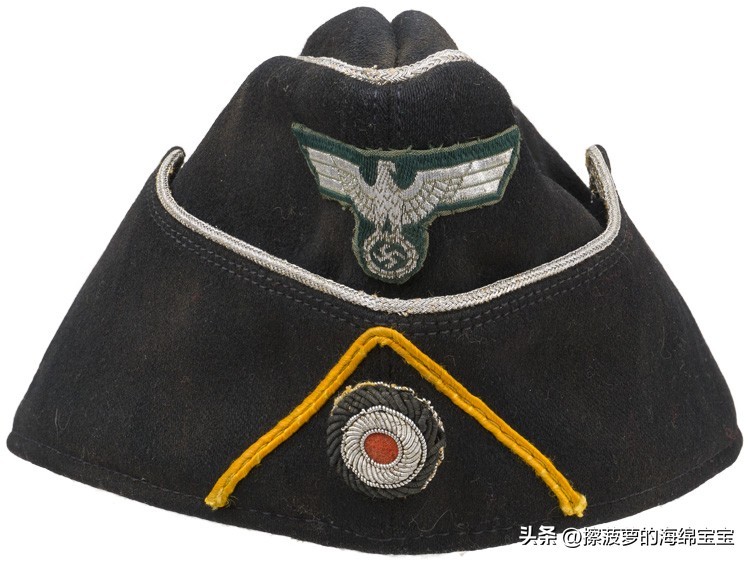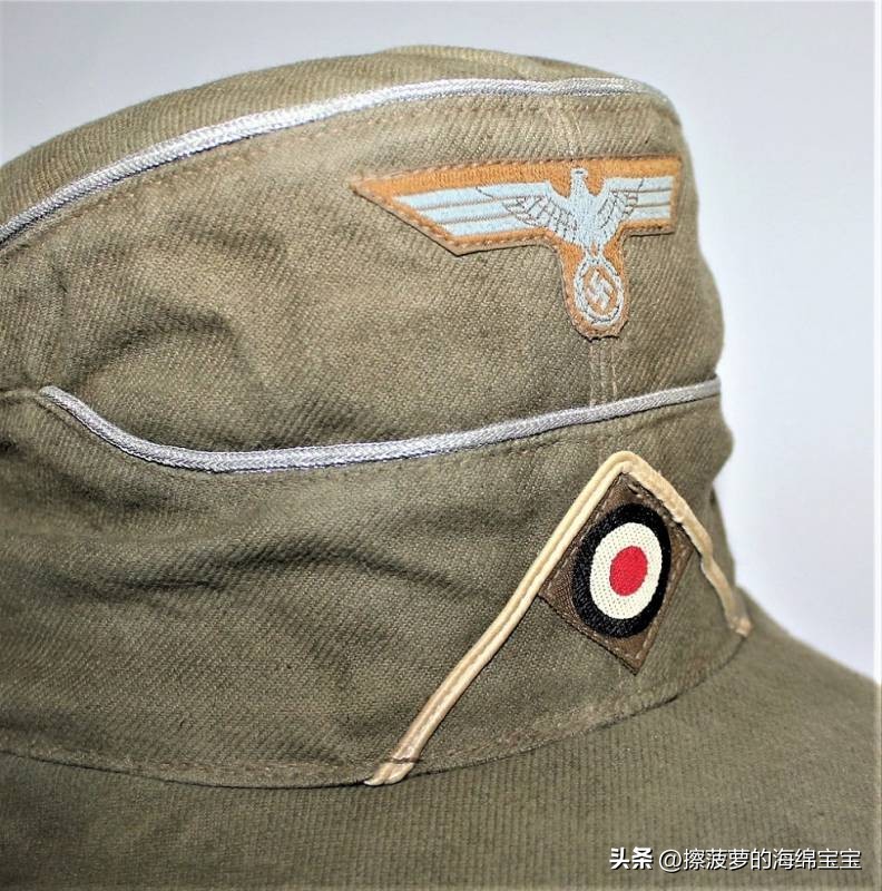 在野战帽和热带野战帽上,还有个倒V形兵种色滚边,这条滚边材质为俄罗斯编织绳,1942年后取消。