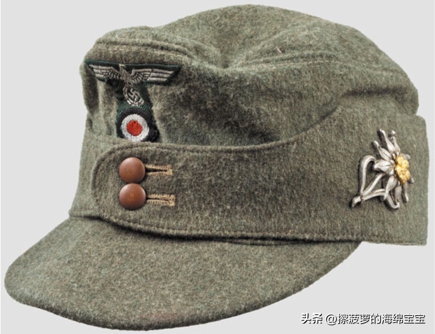 于20世纪30年代初发行,主要由德军的山地,滑雪和轻步兵部队使用。山地帽是根据一战奥匈帝国阿尔卑斯部队所佩戴的M1909山地帽所设计。1939年5月2日,陆总总司令部授权山地部队官兵佩戴独特的雪绒花徽章,这个徽章也是一战奥匈帝国山地部队特征。徽章共有三个样式,布质佩戴在右臂上,无柄金属版佩戴在大檐帽上,有柄金属版佩戴在山地帽上。一开始发行山地帽没有识别军衔功能,只是士兵和士官纽扣为野战灰色,军官为银色,将官为金色,1942年10月在帽冠增加了银色和金色滚边作为军官和将官区别。山地帽和M43野战帽类似,最大区别在于山地帽帽檐更短一些,而且山地帽发行量很少。