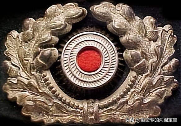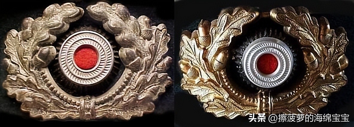 下面是两个橡叶簇帽徽,左边为军官白色款,右边为将官金色款