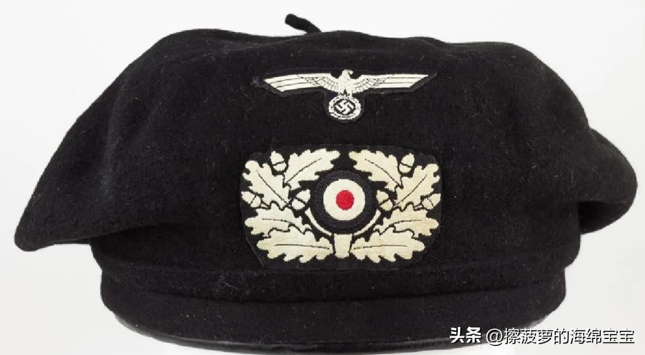 在装甲兵防护帽上,一开始是佩戴刺绣橡叶簇国徽,1936年5月增加了刺绣鹰徽