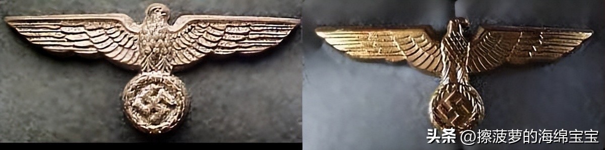 下图为两个金属鹰徽,左边为军官白色款,右边为将官金色款