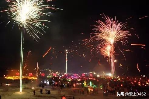 结冰的江面上,烟花盛开,歌舞升平。