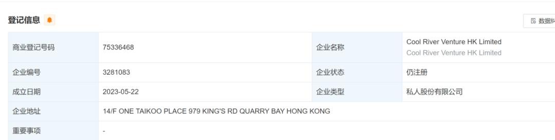 天眼查显示,张一鸣旗下的Cool River Venture公司注册时间为2023年5月22日,是家成立时间仅一年多的新公司,性质是私人股份有限公司。