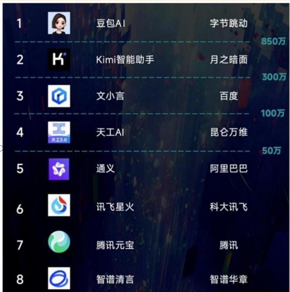 AI应用MAU数据显示,10月,ChatGPT以2.58亿月活稳居全球榜首,豆包以5130万月活位居全球第二,月环比增长9.10%,领先Nova等其他国际竞品。量子位数据显示,截至11月底,豆包APP在2024年的累计用户规模已成功超越1.6亿,每日平均新增用户下载量稳定维持在80万,成为全球排名第二,国内排名第一的AI APP。11月份,豆包APP DAU接近900万,增长率超过15%,远超第二名Kimi DAU 的300万。