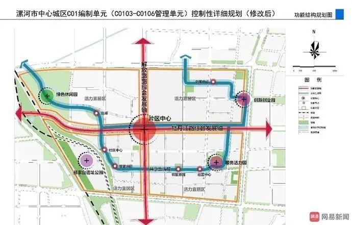 该区域是漯河市重点规划发展区域之一,规划功能定位为高端服务板块,是漯河市政府重点打造的宜居新区工程。区域主要以高品质居住、文化休闲、特色商业功能为主导,内部规划有市政、教育、人文、商业、休闲娱乐等多种配套,致力于打造全市城乡一体发展的试验样板区。