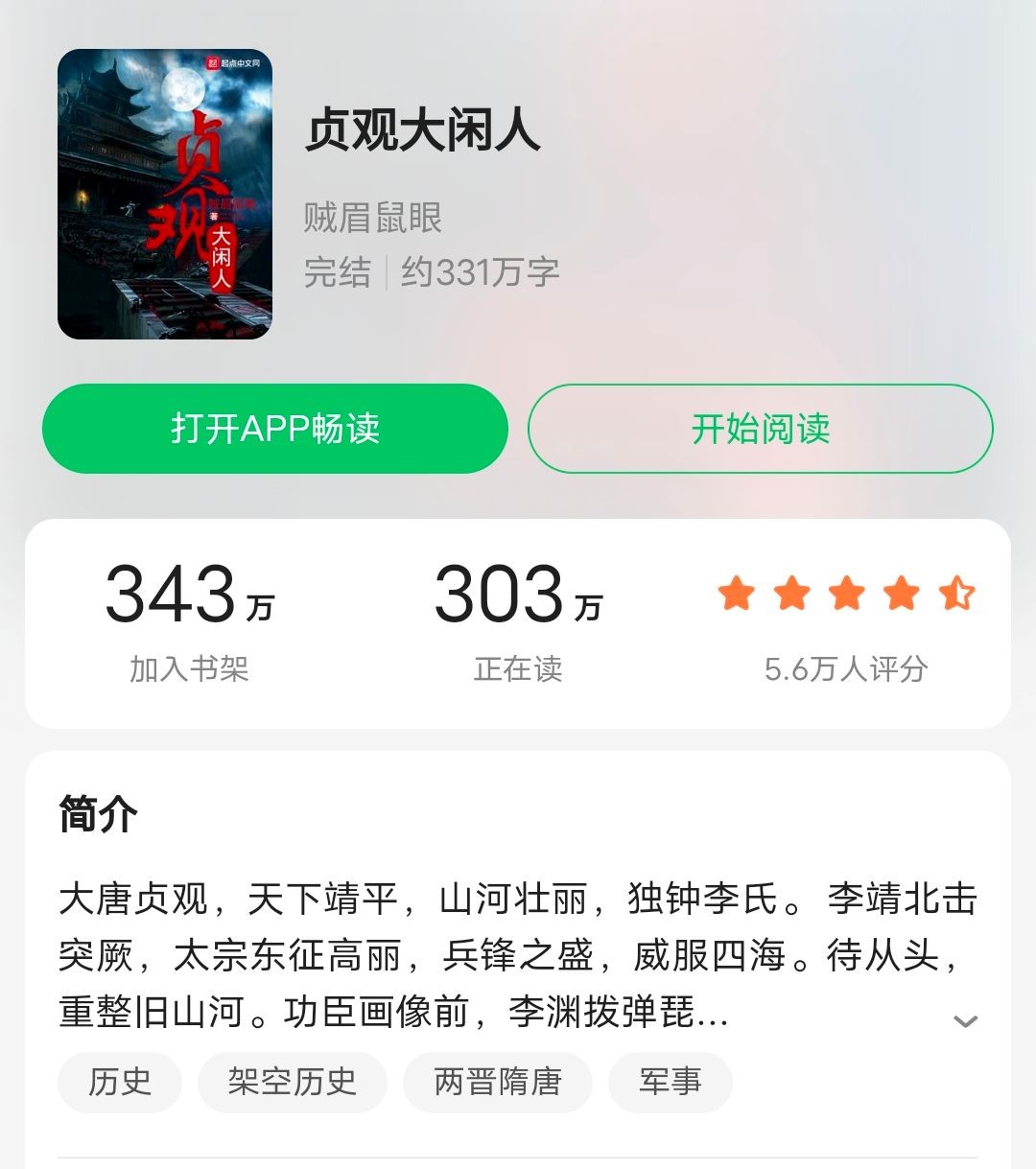 贞观三年。此时李世民已擦拭了玄武门的血迹,雄才大略,气吞山河。此时一代名相马周还在给人喂马,蛰伏于市井,等待着宏图大展。此时公主殿下们初成年,豆蔻年华,情窦初开。此时一代骁将和名臣们,开始了他们的故事。也在此时,陈正泰来到了这个世界,他经历了懵然,随即纵身跃入这无数王侯将相掀起高浪的历史长河,故事从这贞观三年开始……...最近超火的好书,配角有智商,情感细腻接地气,文笔好到爆炸,重磅推荐。