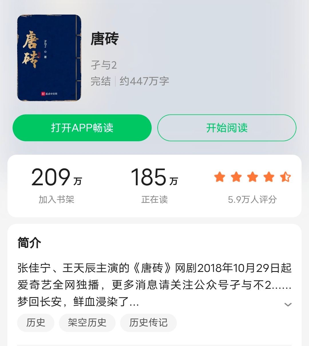 一部穿越类型的小说,一个毛头小子来到了贞观初年的唐朝,名叫云烨,讲述了他在这个时代的遭遇。整部小说更像是一部人物自传,主角云烨行走在唐朝,看遍了风土人情,尝遍了世间百态。看着主角的成长彷如一个真正的唐朝子民的成长史。少年时被叔伯们踢来踢去,其实就是个“皮猴子”;青年后结婚生子,为家奔波;中年时开始学会担当,为国领命。《唐砖》这部小说,书迷们力推,剧情精彩刺激。