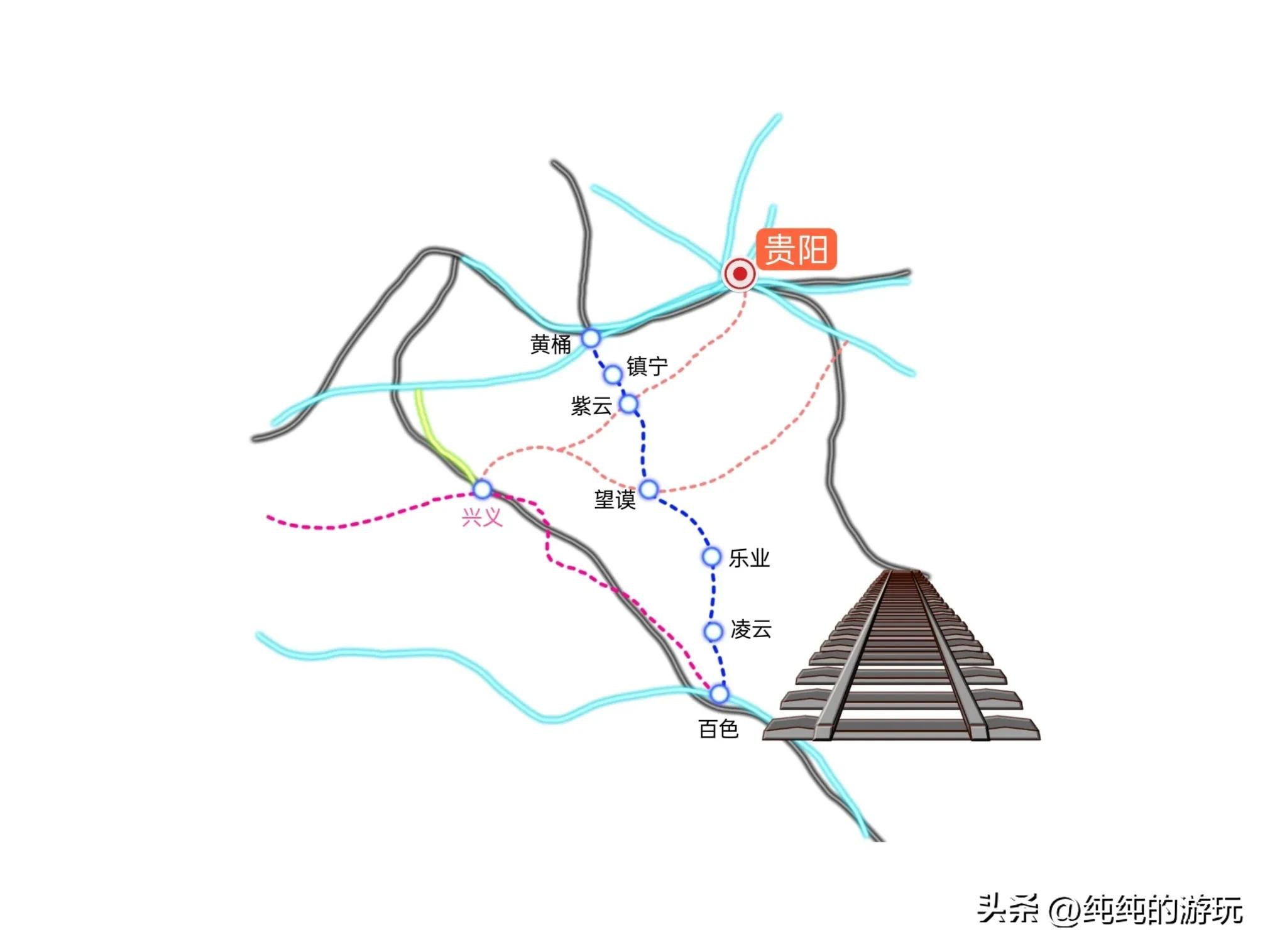 正线全长大约314.149公里,计划设立28座站点,途经六枝特区、安顺市、黔西南州和广西百色市,计划由沪昆铁路黄桶站引出,途经镇宁、紫云、望谟、乐业和凌云县后,接入永乐站,再通过永乐至百色增建南昆铁路二线引入百色站为止。计划工期为5年,预计2027年建成通车。