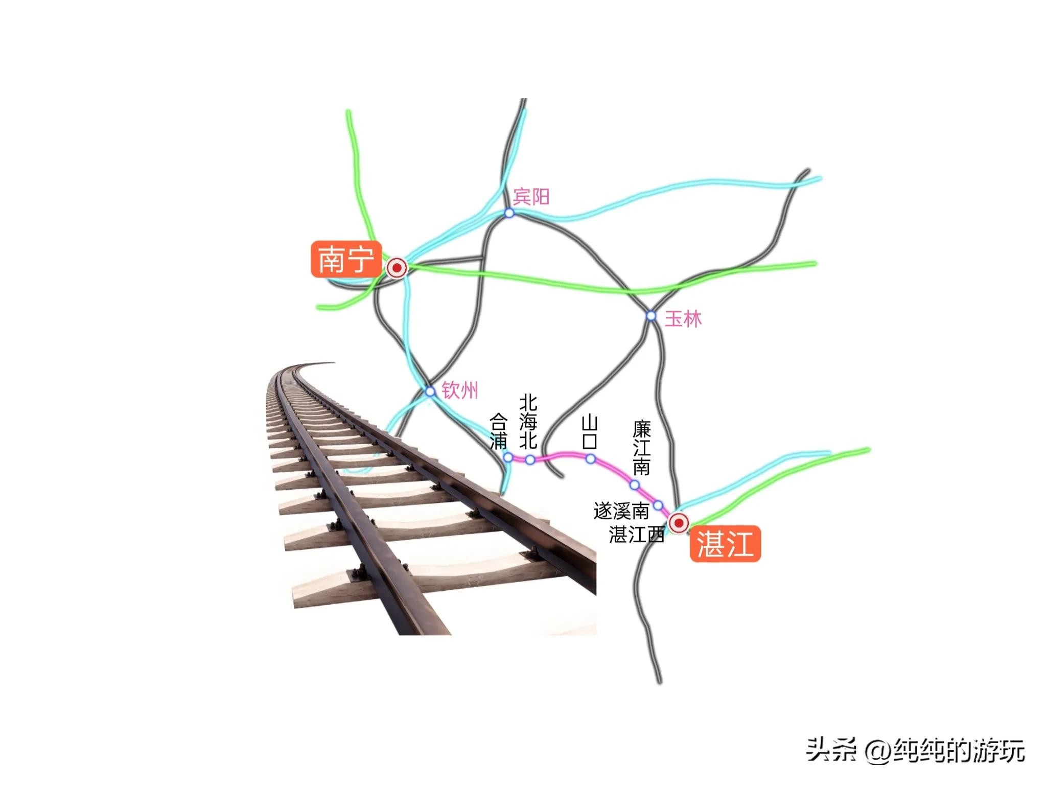 全线长约141.655公里,连接线长约38.032公里,线路西起北海市合浦县,向东经铁山港湾、白沙镇、山口镇进入广东省廉江市的青平镇和横山镇,由遂溪县南侧引入茂湛铁路既有湛江西(客)站,并经过联络线与在建广湛铁路的湛江北站连接。线路设计时速为350公里,计划十四五期间开工建设并建成通车。
