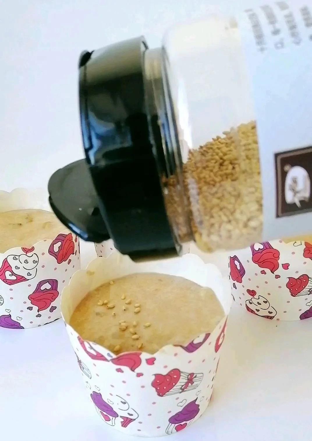 4. 处理好的面糊倒入纸杯7分满,撒点芝麻。