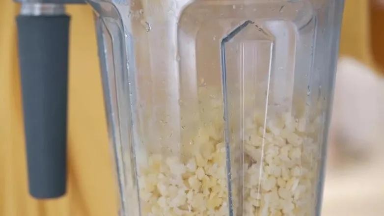 3. 蒸好的绿豆倒入搅拌机,少量多次加入适量的水,一起搅打细腻。