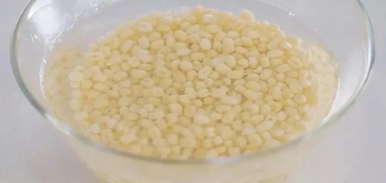 1. 去皮绿豆加水泡发8小时后,冲洗干净,备用。