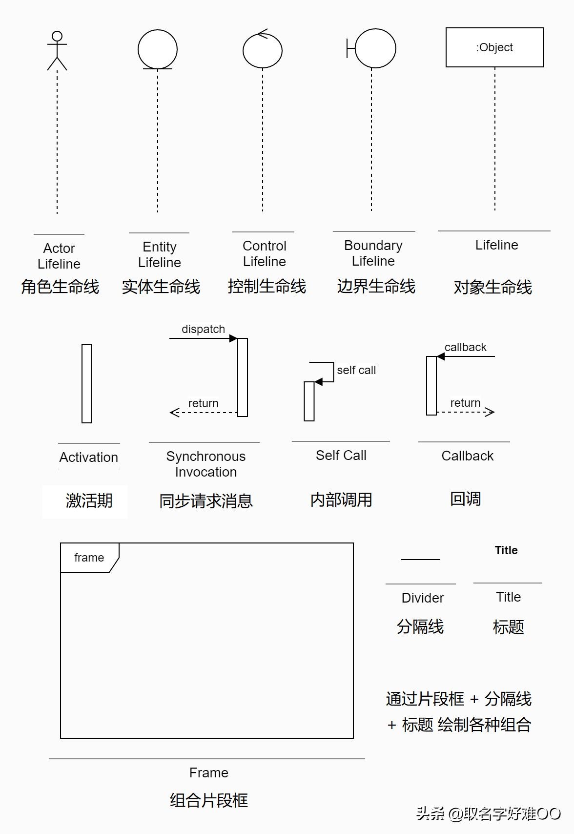 Boundary、Control、Entity 是三种特殊的生命线对象类型,通常一起使用(MVC模式)Entity:实体对象,用于表示需要永久保存或较长生命期的数据对象,例如票据、文件、数据库(通常不直接说数据库等技术实现方式,而说逻辑意义的名称)Control:控制对象,用于表示业务逻辑、分工协调的职责对象Boundary:边界对象,可用于表示交互界面、子系统异步消息:有些资料使用 ”上半边箭头“ 表示,我在这里用不接收返回值来表示