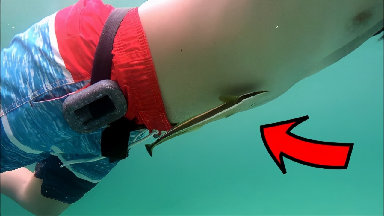 在吸盘鱼的尾巴搬上鱼线,看见大鱼就把它丢下去,出于本能它会快速寻找一个可以粘附的大型动物。
