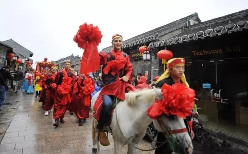 虽然没有过于奢华的体现,但即便是步行去结亲的婚礼,依然还会受到人们的祝福,同样也充满了喜庆的气味。